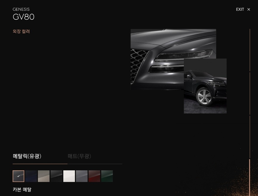 - 카본메탈, 로얄블루, 골드코스트실버, 비크블랙, 우유니화이트, 세빌실버, 리마레드, 카드프그린