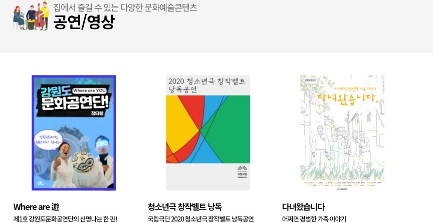 ▪ 판소리 외길 20년(국립중앙극장), 코로나 극복 응원 공연 우리 함께(김해시립예술단) 등의 콘텐츠가 제공